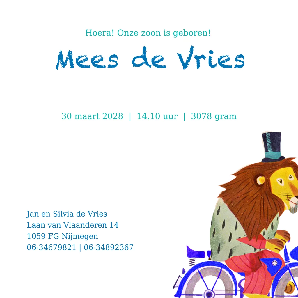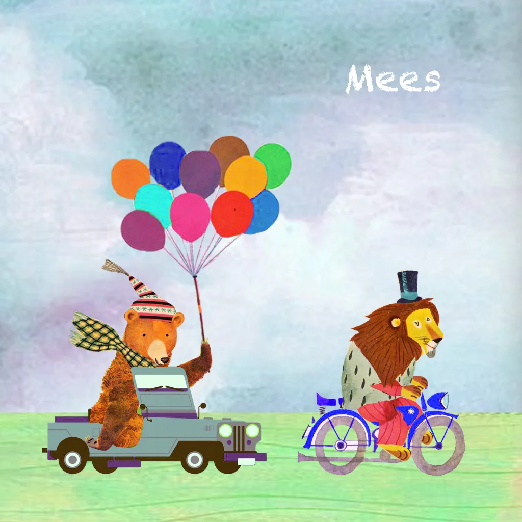 Retro geboortekaartje bonte stoet dieren voor een jongen. (5187) Geboortekaartje Mees