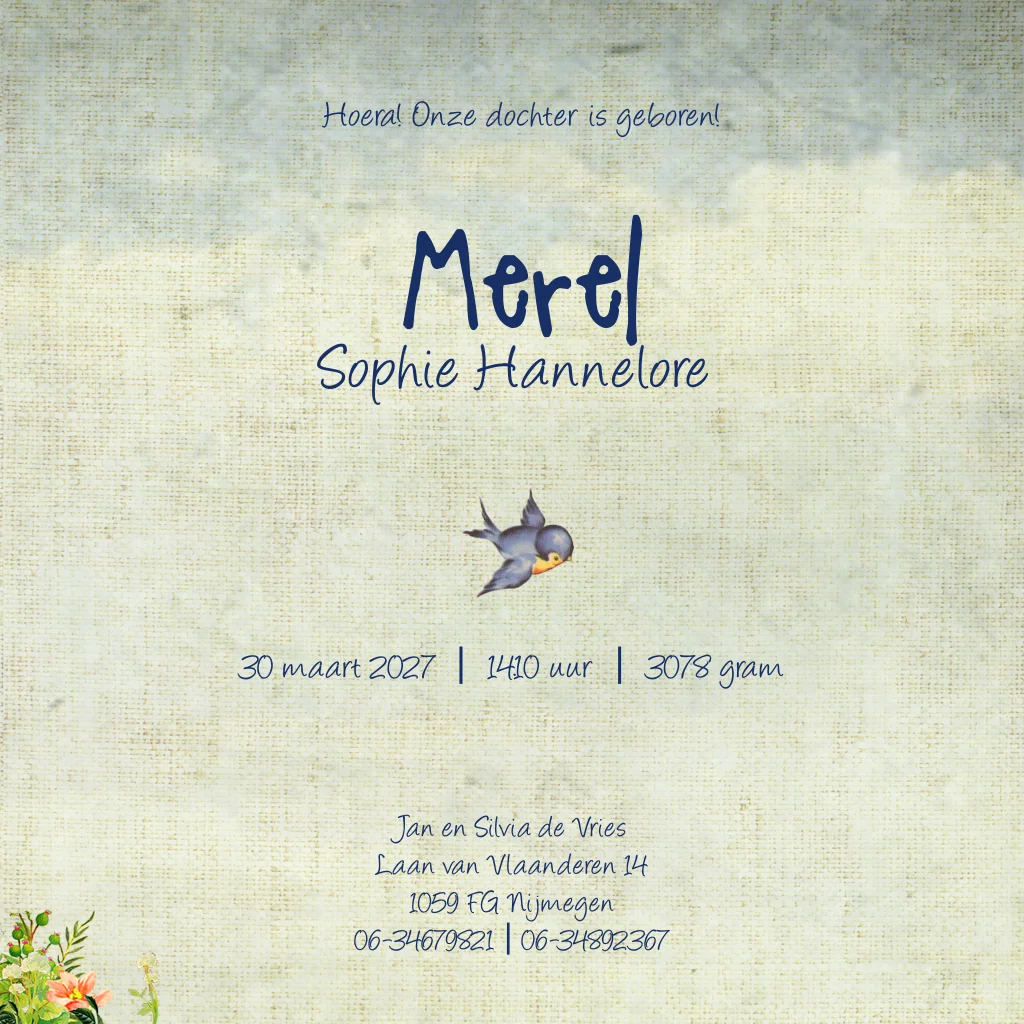 Nostalgisch geboortekaartje met slapend kindje in het bos