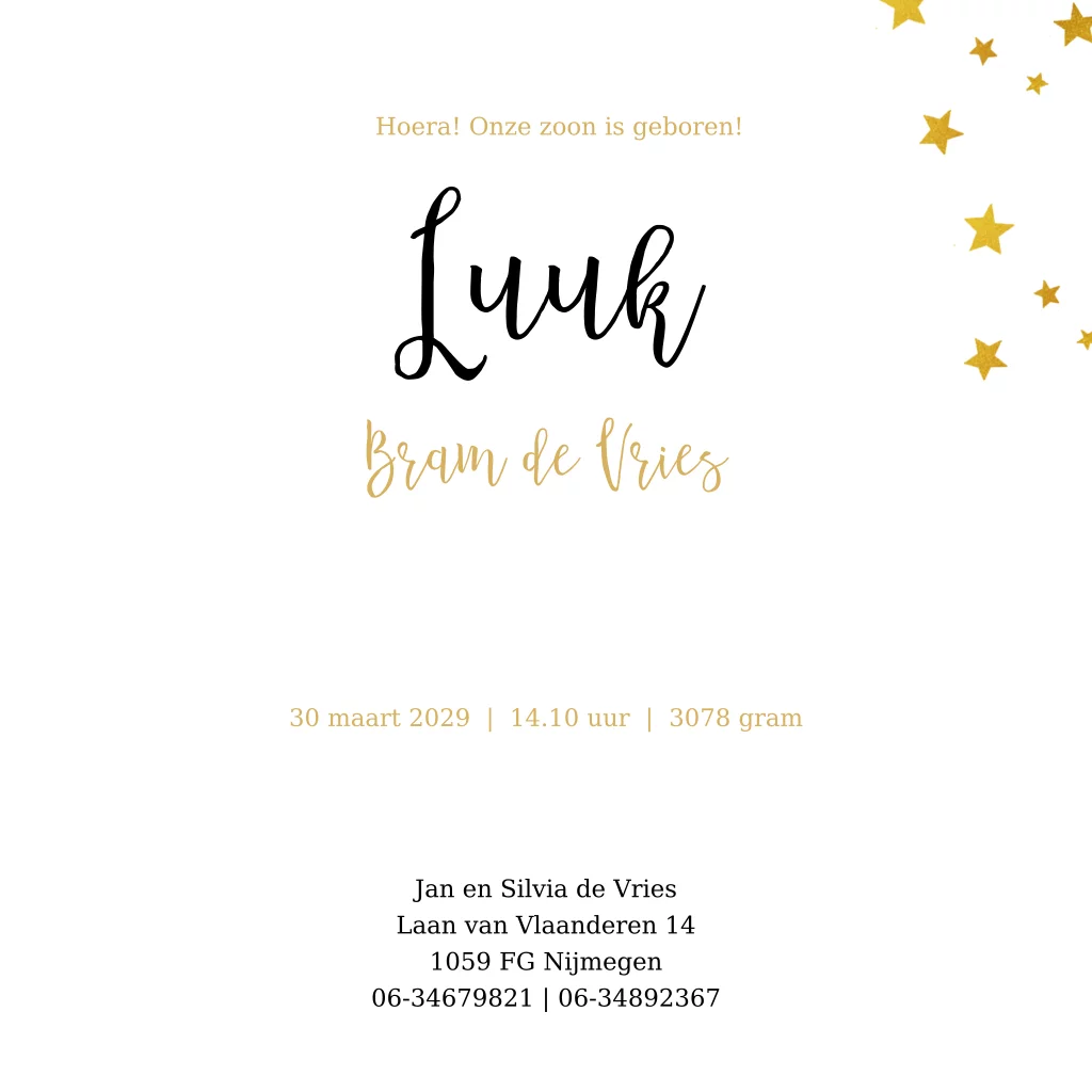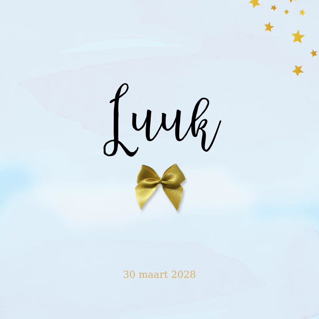 LET OP: Het strikje op dit kaartje wordt niet afgedrukt, deze is ter voorbeeld. Bij de proefdruk of eindbestelling wordt niet standaard een strikje geleverd. Op die plek kun je straks zelf het échte strikje plakken die je in het bestelproces kunt bijbestellen.