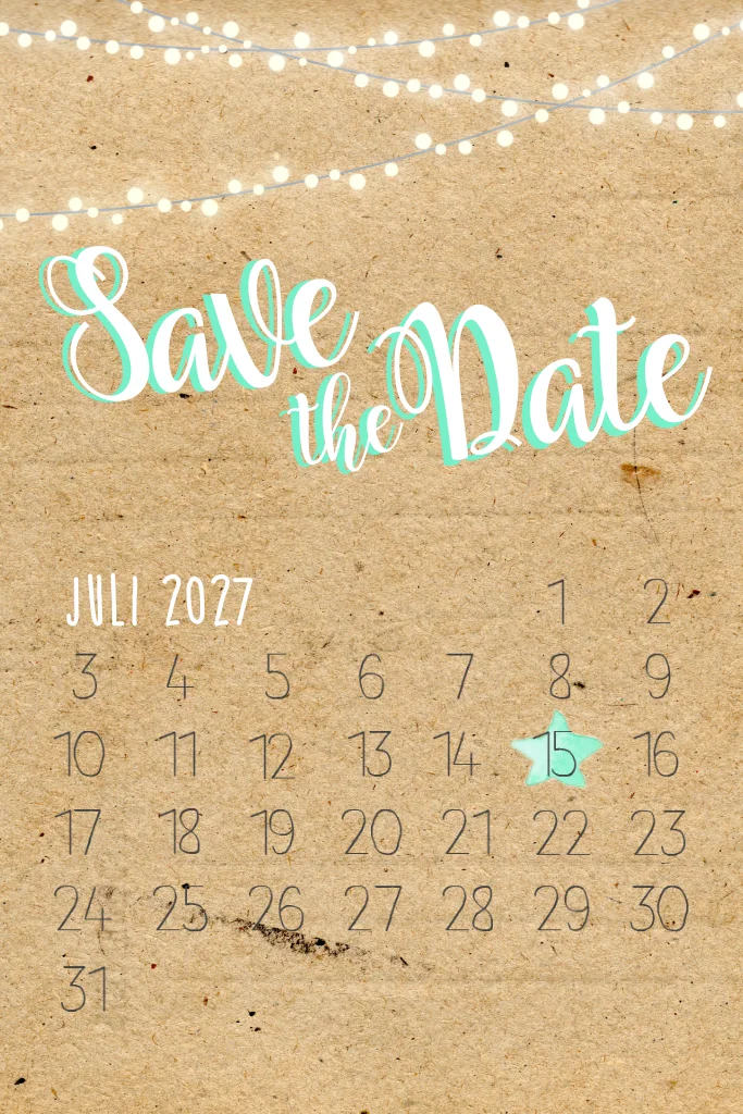 Save the date, wij gaan trouwen op karton met lichtslinger!