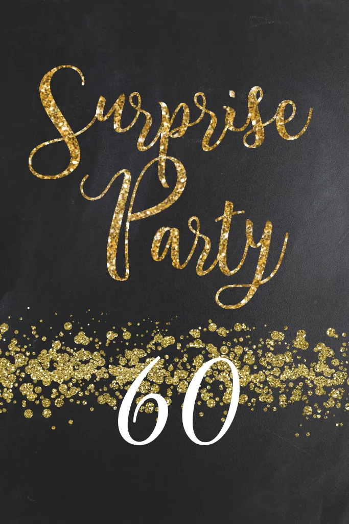 Dat belooft een spetterende surprise party te worden! De 60 jaar kun je in elke gewenste leeftijd aanpassen. Met goudkleurige details en tekst. (7138)