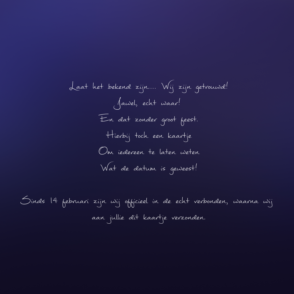 Trouwkaart blauw wij zijn getrouwd
