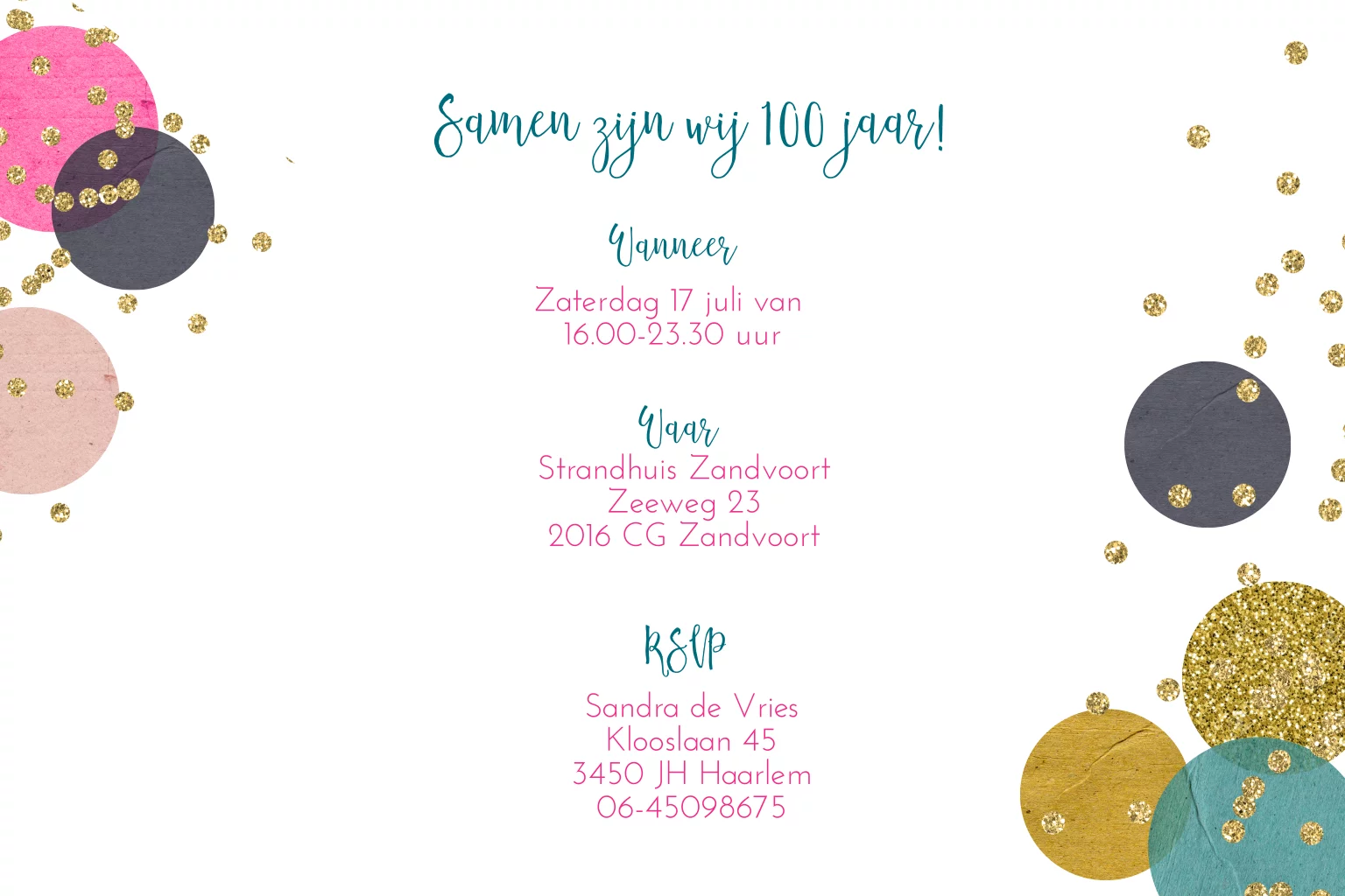 Feestelijke verjaardag uitnodiging met confetti in sprankelende kleuren. (8391)