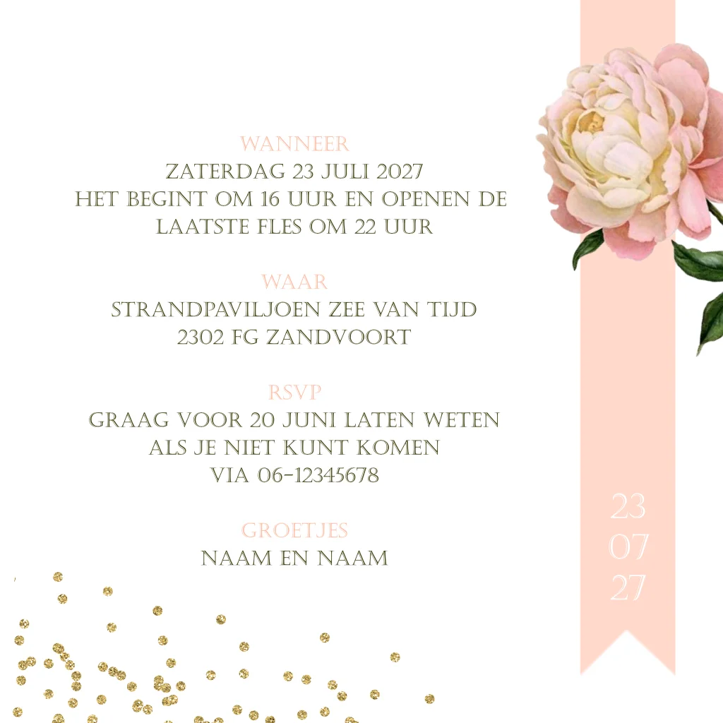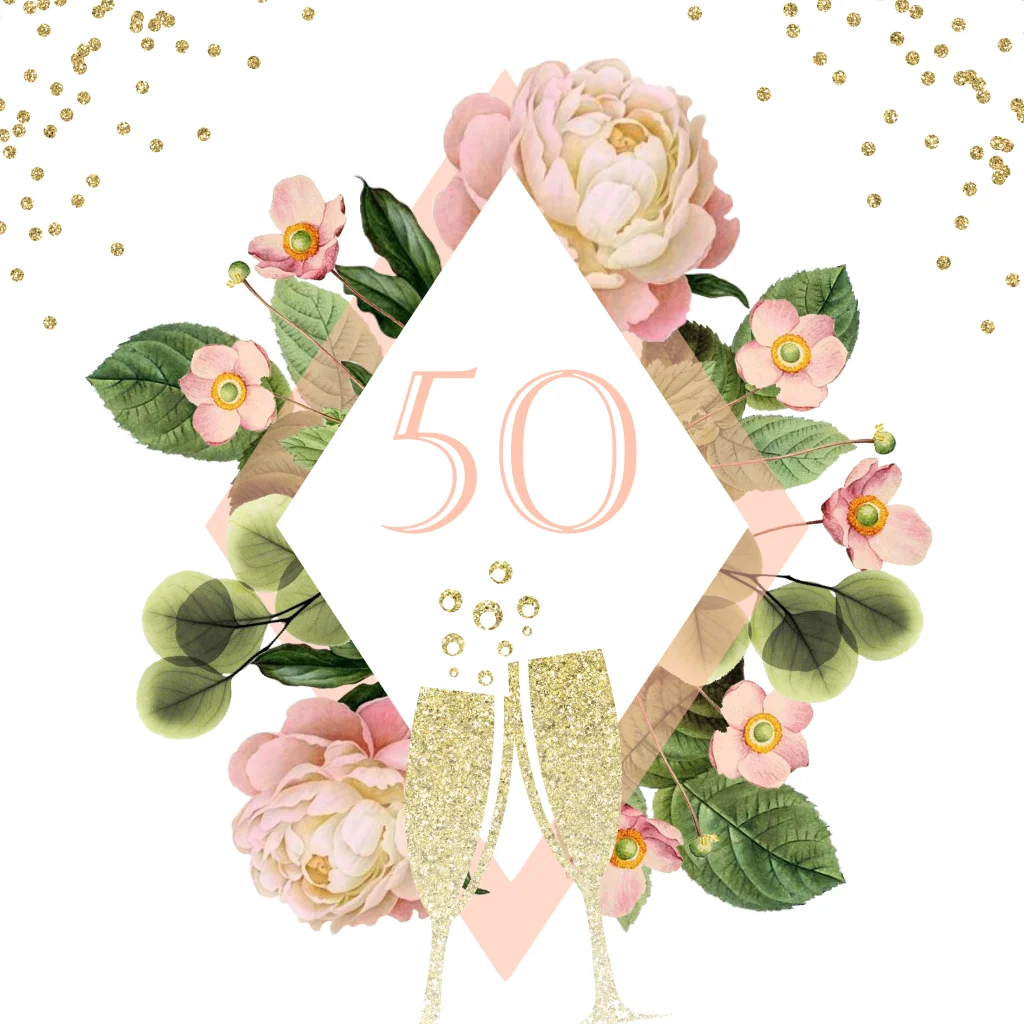 Uitnodiging verjaardag 50 jaar roze en goudkleur en champagne glazen. (8477)
