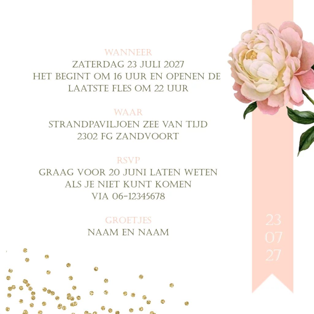 Stijlvolle uitnodiging verjaardag 65 jaar roze en goud