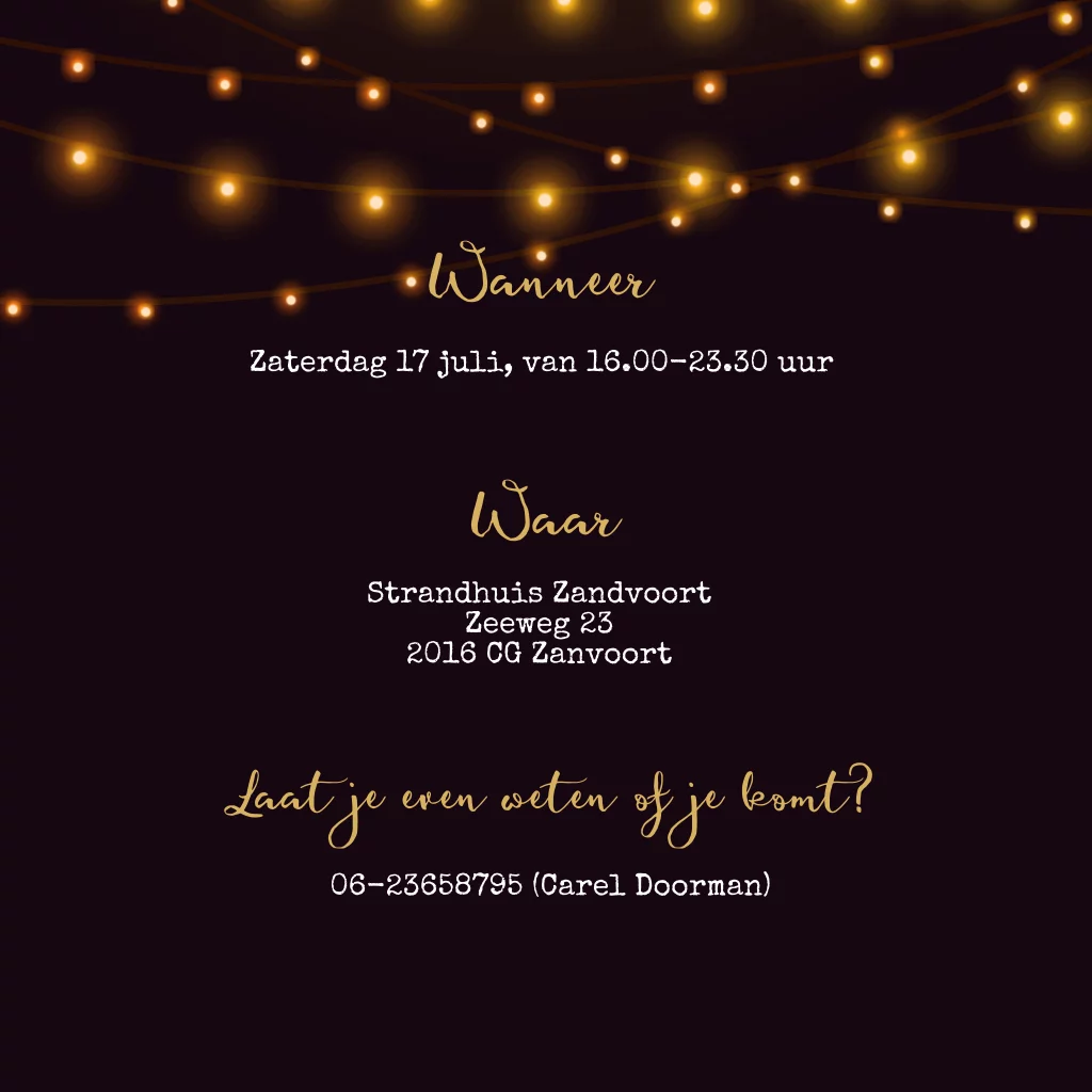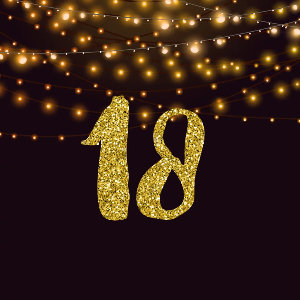 Uitnodiging 18 jaar met gouden glitters