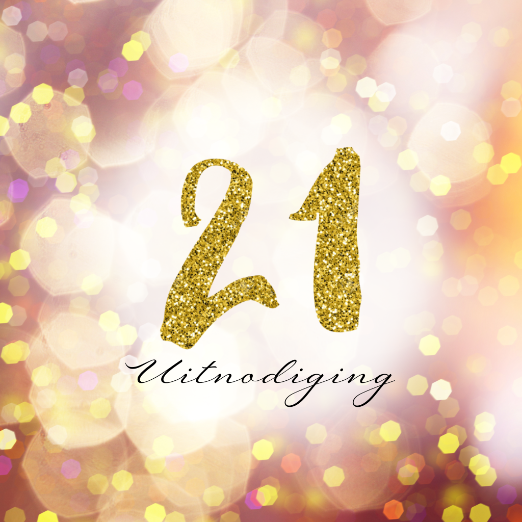 Verjaardagsuitnodiging 21 jaar met gouden glitters