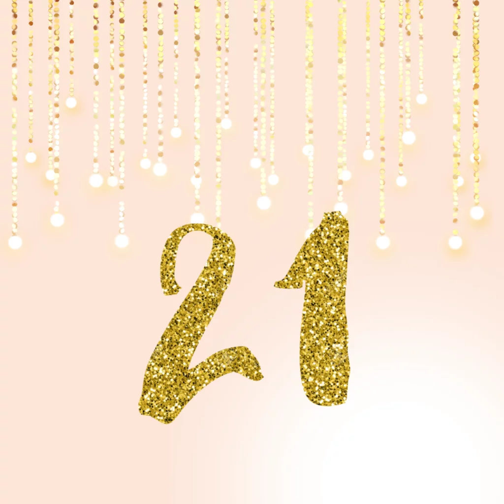 21 uitnodiging in roze wit en goud met feestelijke slingers