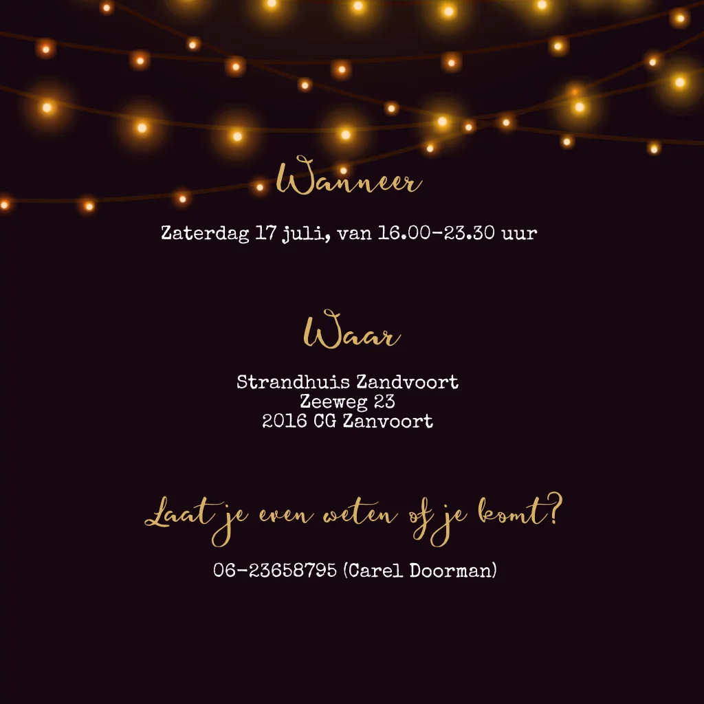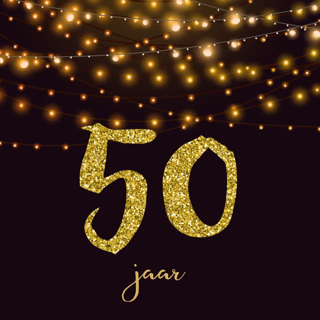 Uitnodiging voor man of vrouw die 50 is jaar is geworden. Met goudkleur. (6556) Wil je een ander jaartal in dezelfde stijl op de kaart? Kijk bij afbeeldingen > cijfers of neem contact met ons mee. We zetten dit gratis voor je om.