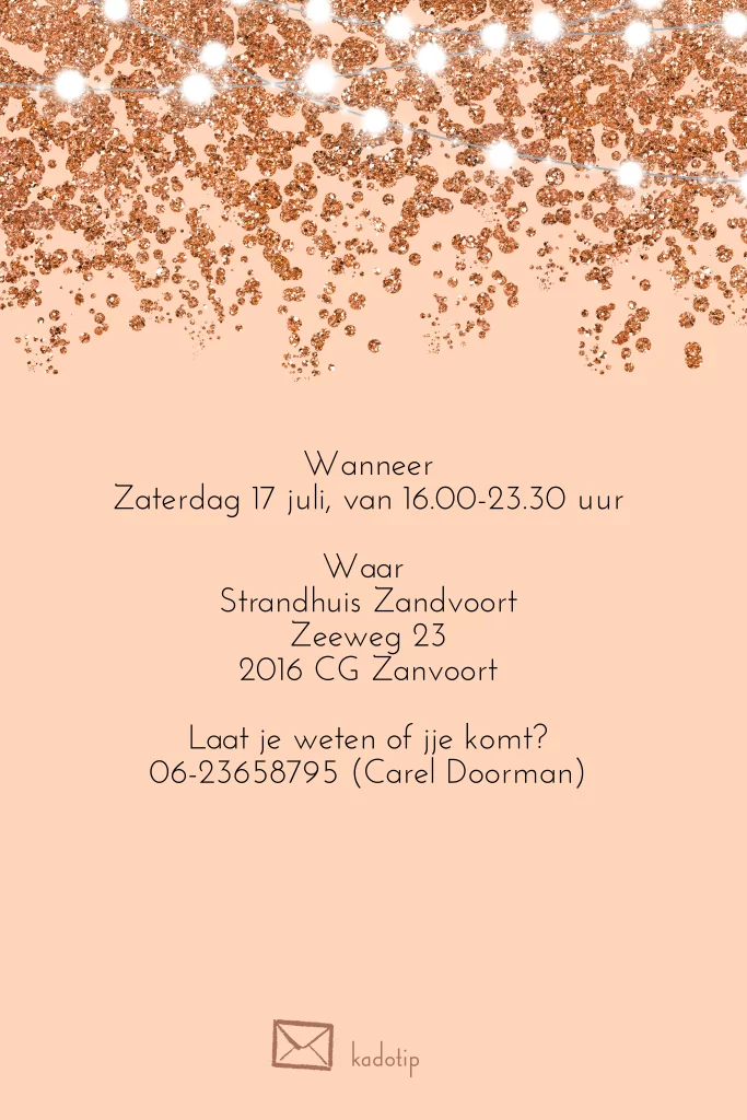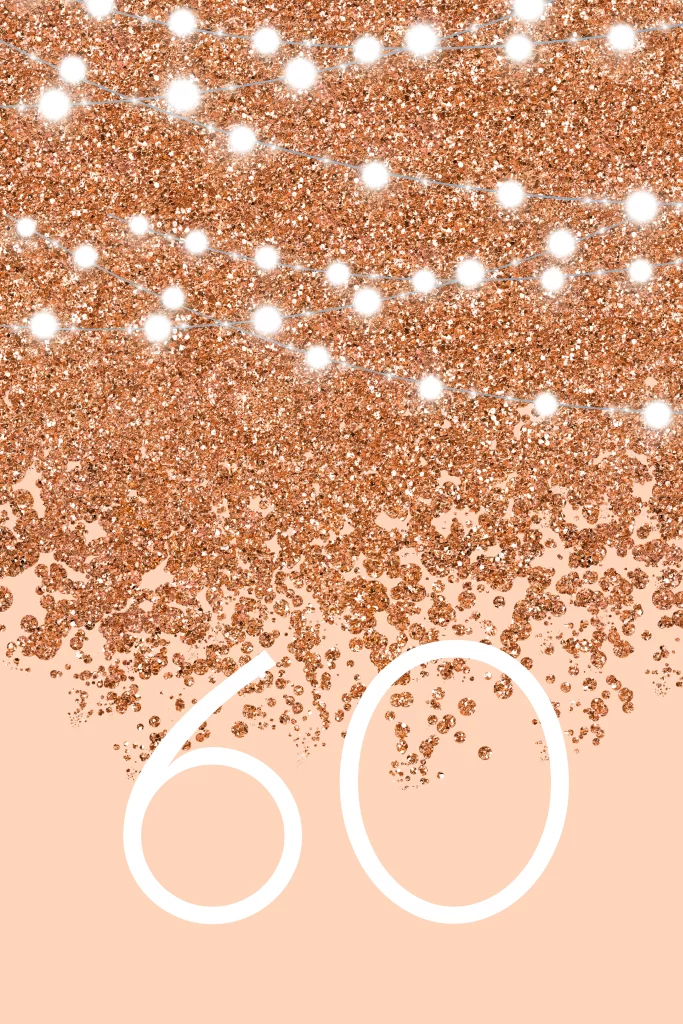 Uitnodiging 60 jaar verjaardag met koperen glitters. (7136) Dit is een vrolijk voorbeeld uitnodiging voor een verjaardag om mensen uit te nodigen.
