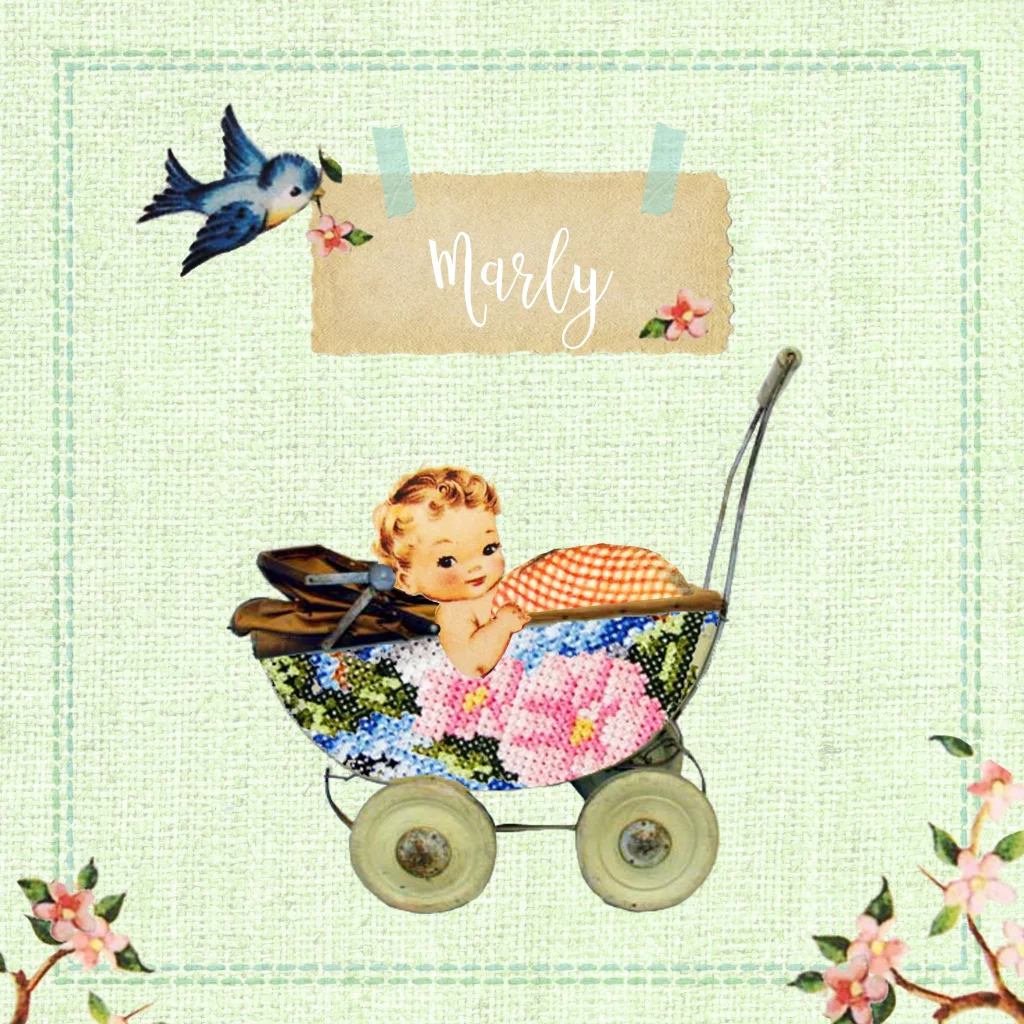 Vintage retro geboortekaartje met wandelwagentje voor een meisje.( (5812)