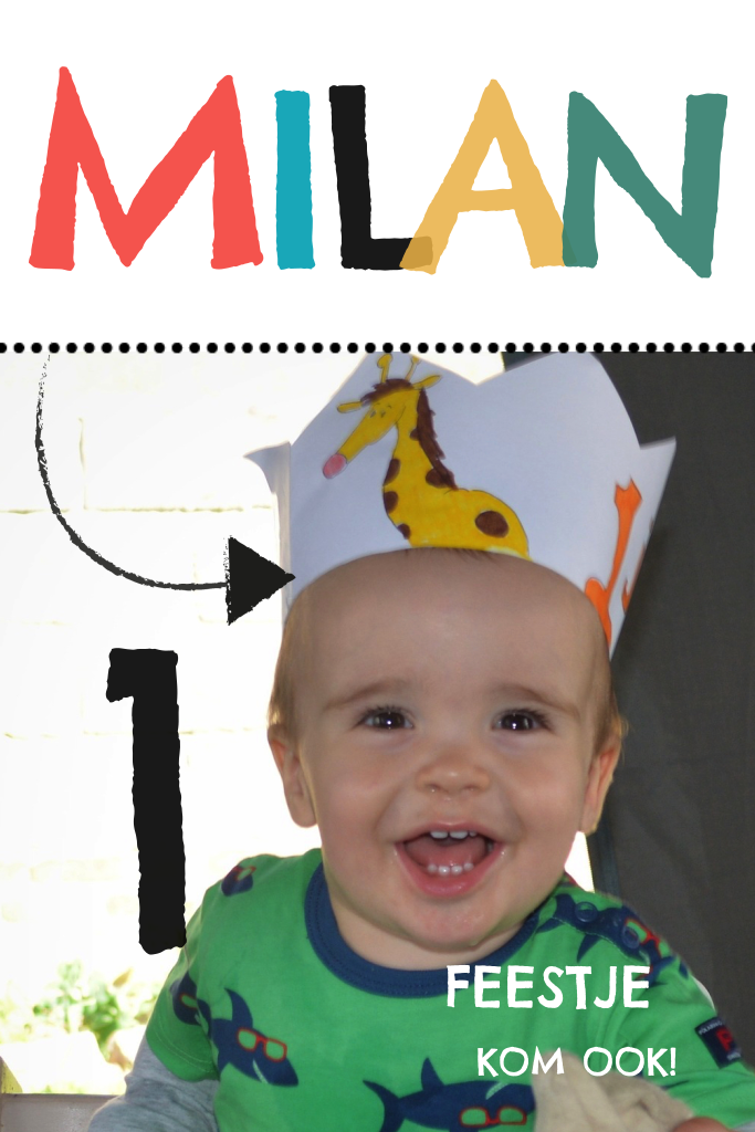 Uitnodiging 1 jaar kinderfeestje met naam en leeftijd