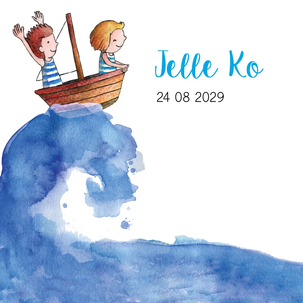 Geboortekaartje tweede kindje 2 jongetjes in een boot op golf