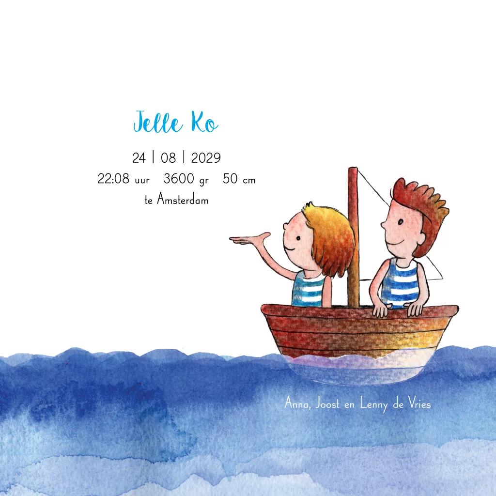 Geboortekaartje voor een jongen met een bootje op zee. Grote broer met broertje in een boot. (24287)