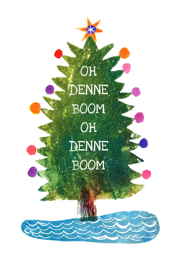 Originele kerstkaart met illustratie van kerstboom in vrolijke kleuren. Oh denneboom oh denneboom. (24351)