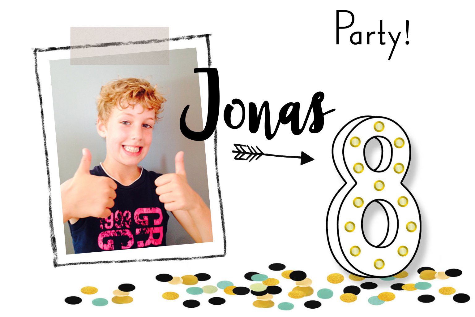 Super hippe kaart met acht van lampjes. Hip en origineel uitnodiging kaartje voor het feestje van jouw zoon. Trendy in zwart-wit met eigen foto. (6502)