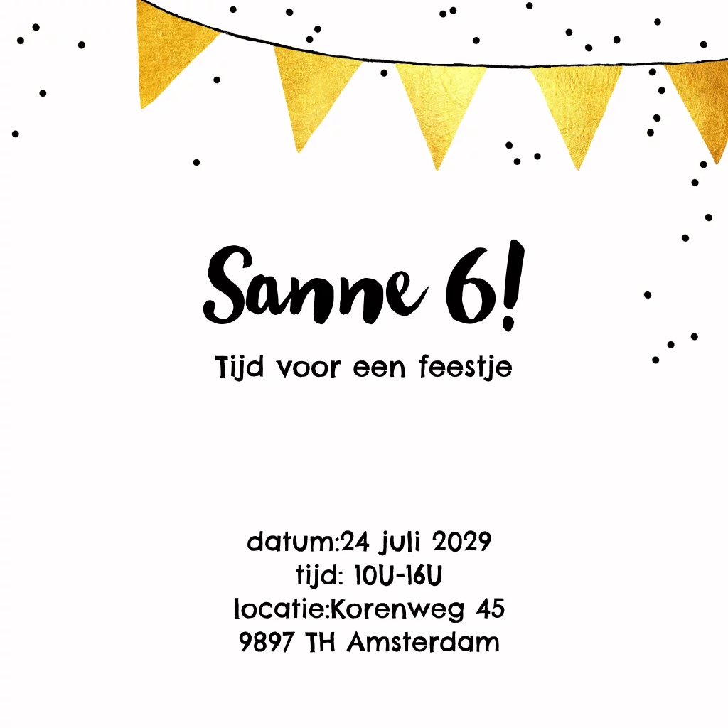 Kinderfeestje uitnodiging gouden vlaggetjes