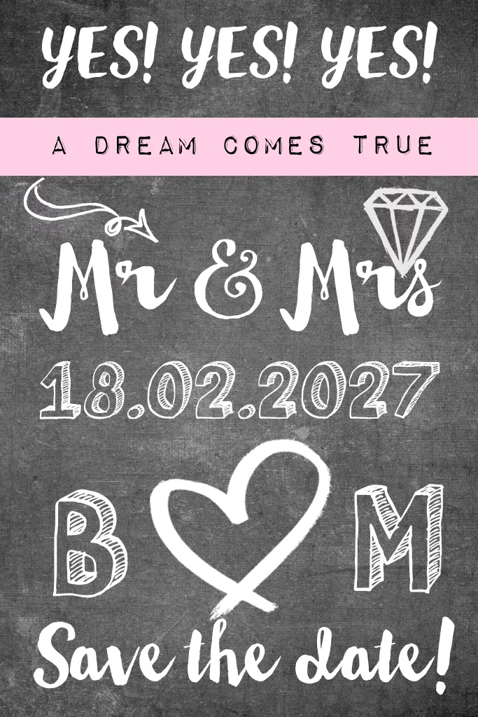 Uitnodiging trouwkaart met krijtbord en mr en mrs