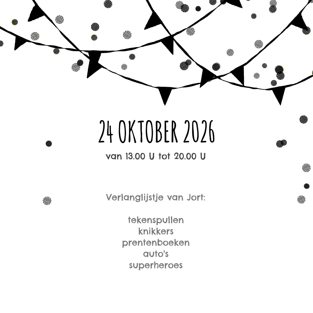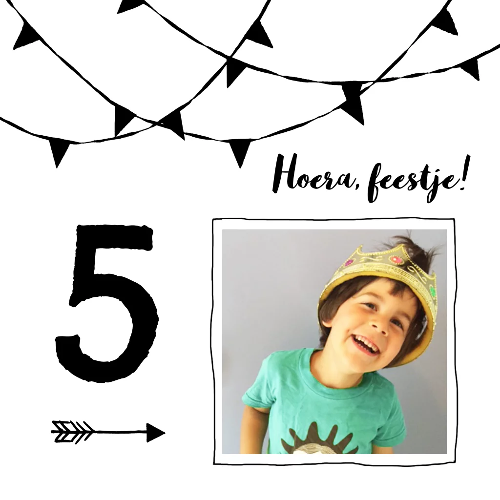 Super leuke en hippe kinderfeestje uitnodiging voor jullie zoon of dochter! Origineel en hip met silhouet vlaggetjes en eigen foto van jullie kind. (3771)