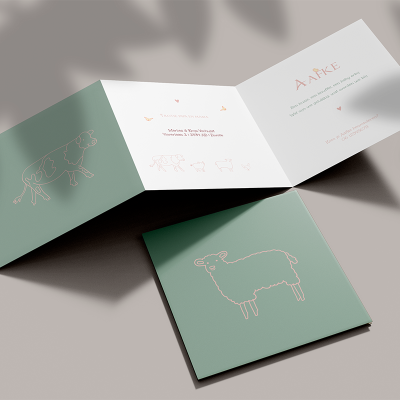 Geboortekaartje drieluik met boerderijdieren in lijntekening