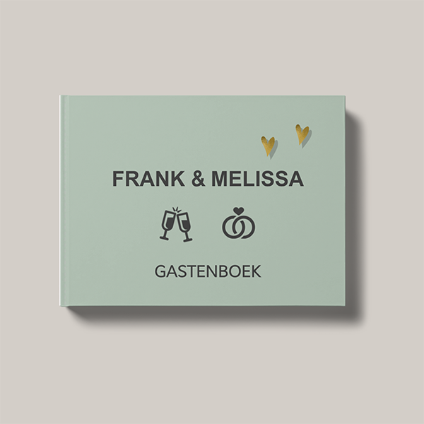 Gastenboek met een groene achtergrondkleur. (22510) Let op: je dient het gastenboek naar wens aan te passen en de voorbeeldteksten te wijzigen.