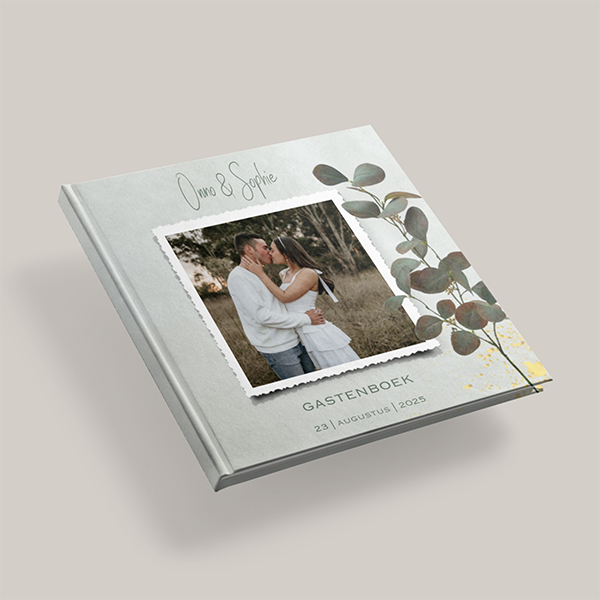 Gastenboek met geschilderde eucalyptus takjes
