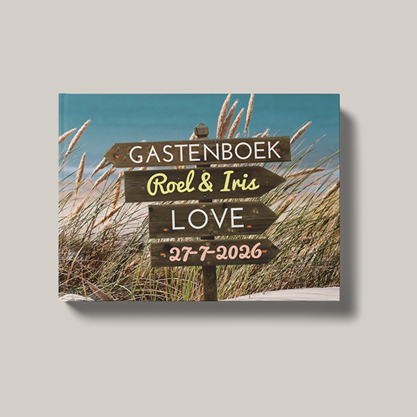 Gastenboek strand en zee thema met wegwijsborden