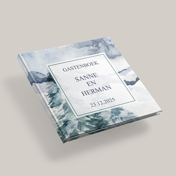 Trouwen Gastenboek thema winter blauw groen aquarel