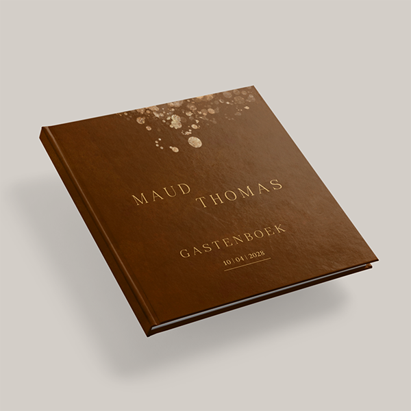 Gastenboek trouwkaart met bruin oranje achtergrond