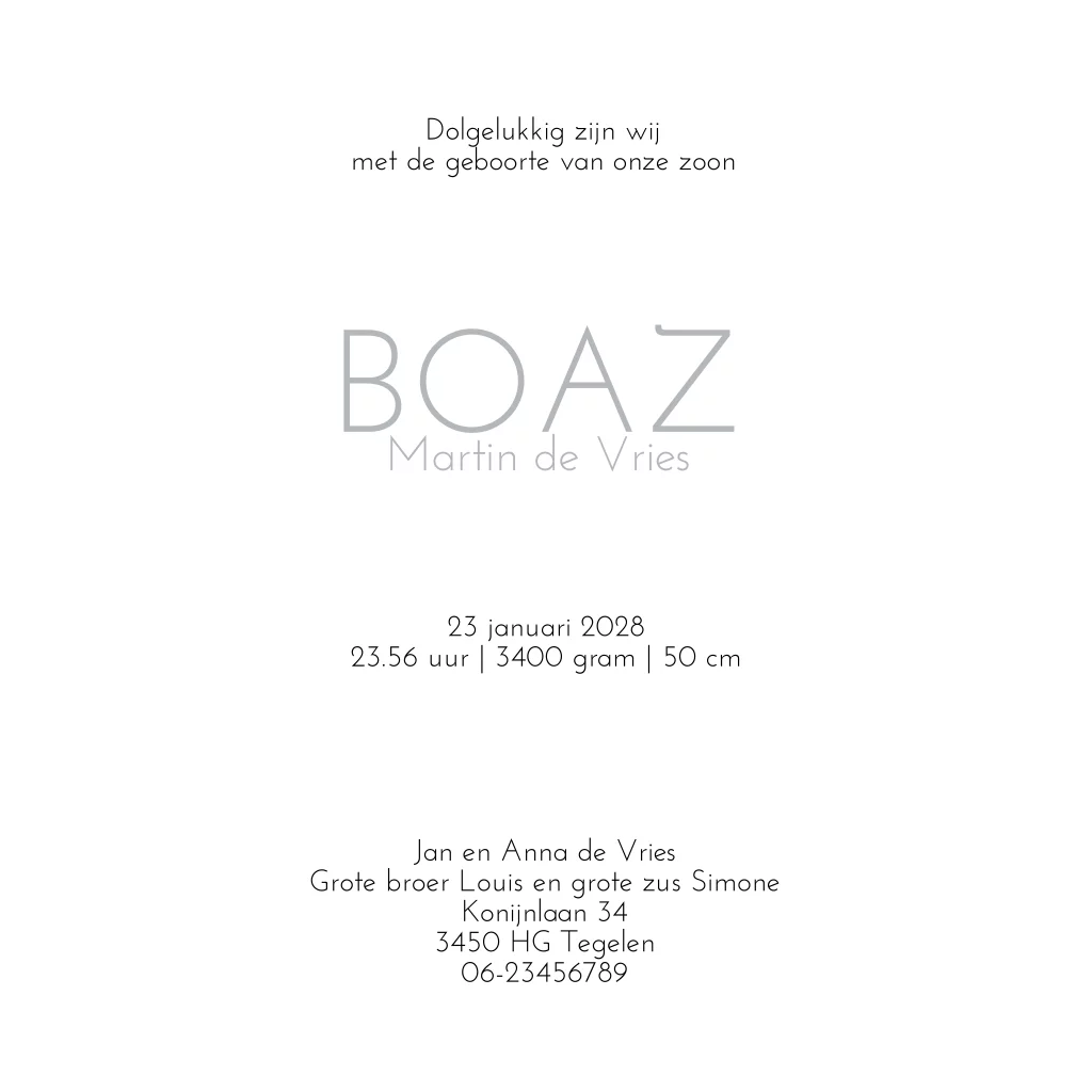 Geboortekaartje 3e kindje jongen met grote zus en broer