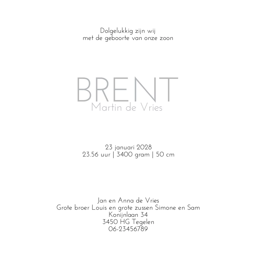 Geboortekaartje met broers en zussen, 4e kindje. (10115)