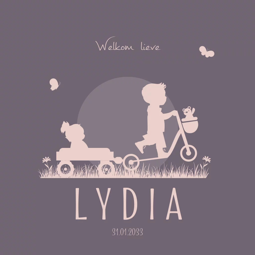 Geboortekaartje 2e kindje silhouet step meisje grote broer