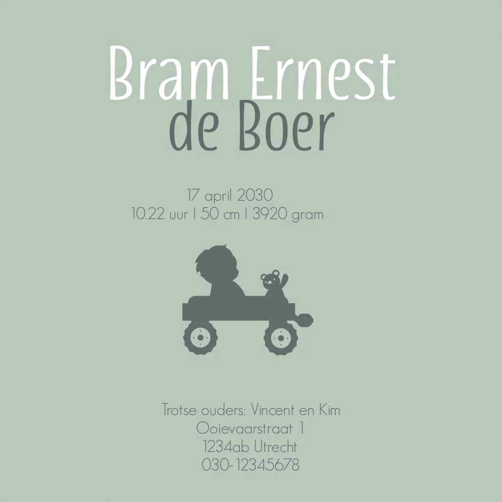 Geboortekaartje 2e kind jongetje met grote broer tractor