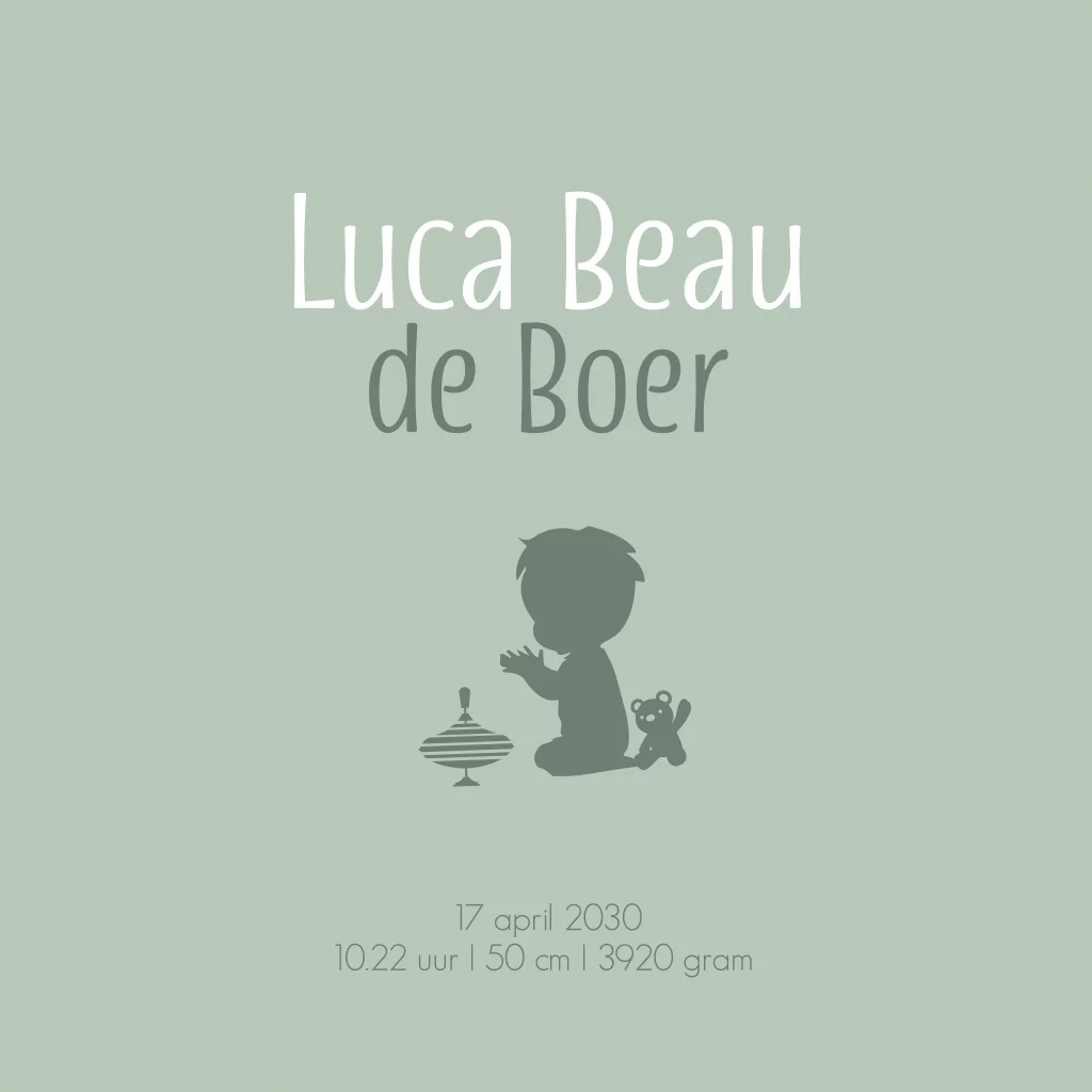 Geboortekaartje voor een tweede kindje waar de grote zus een tol aan haar kleine broertje laat zien. (24429)