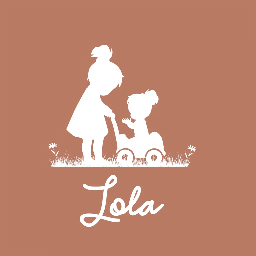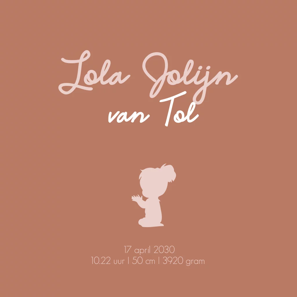 Geboortekaartje 2e kindje meisje met silhouet loopkarretje en zus