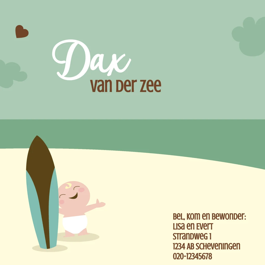 Geboortekaartje jongen retro zee surf surfplank