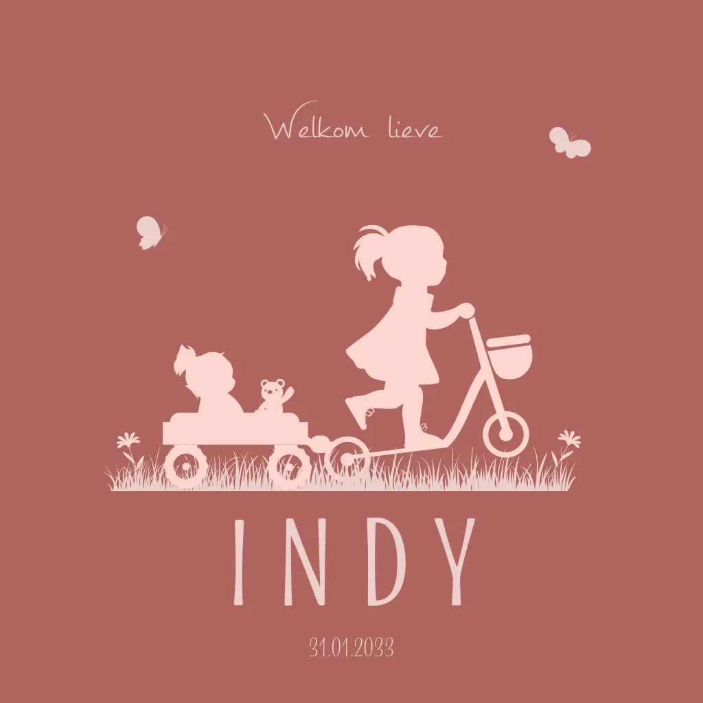 Geboortekaartje 2e kindje meisje met grote zus op step