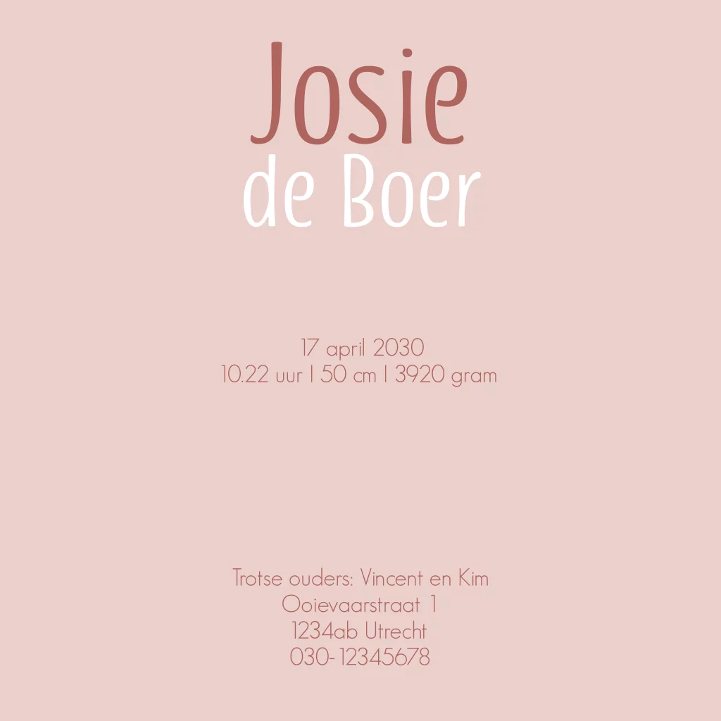 Geboortekaartje vierde kindje meisje in bolderkar met zussen