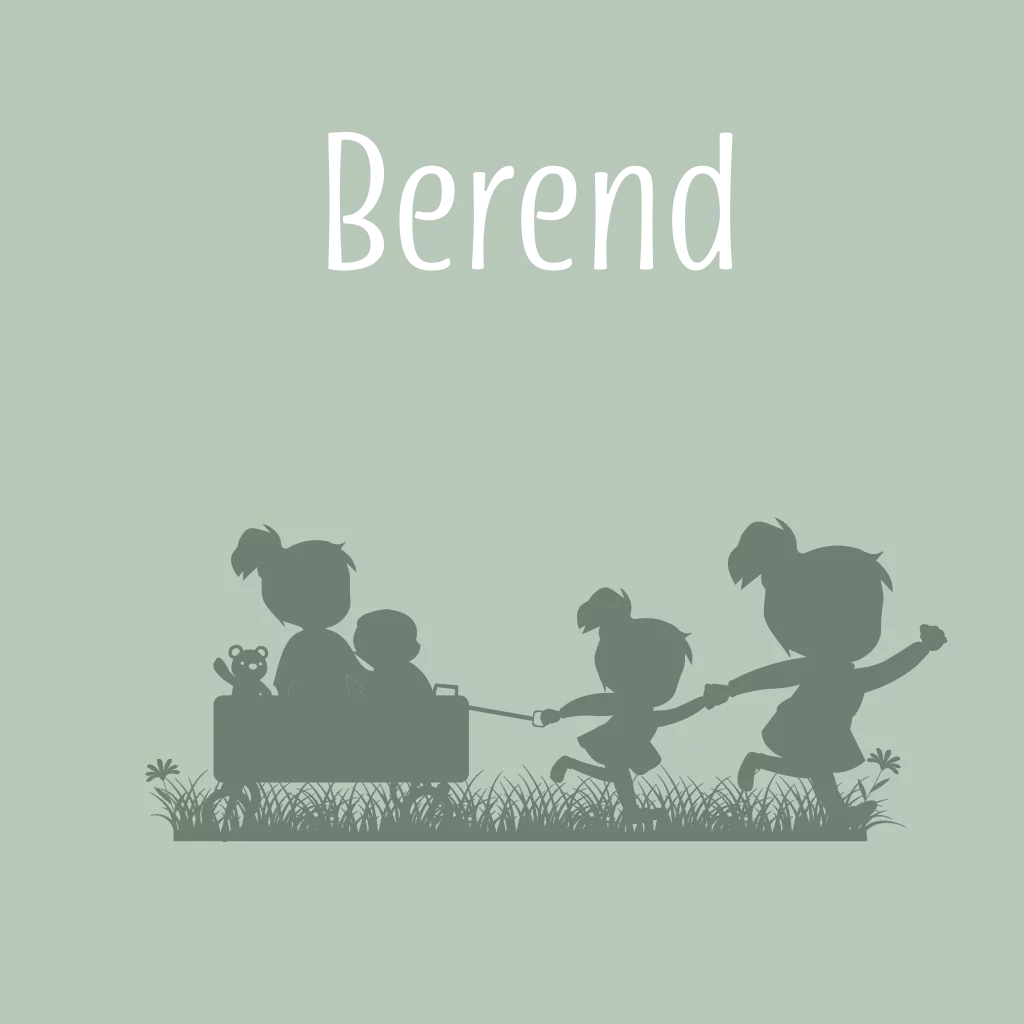 4e kindje geboortekaartje voor een baby jongen. Met een tekening van een zus die haar zusje en broertje voorttrekt in een bolderkar bolderwagen. (24335)