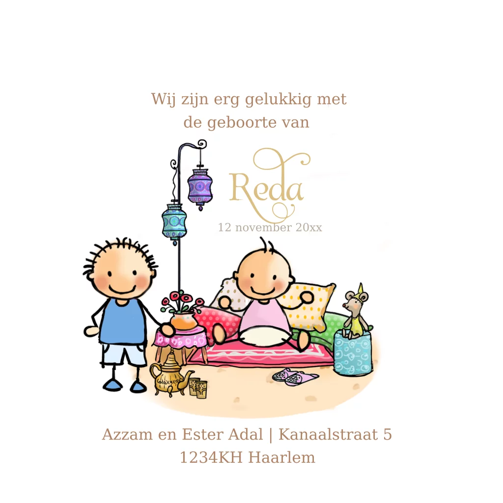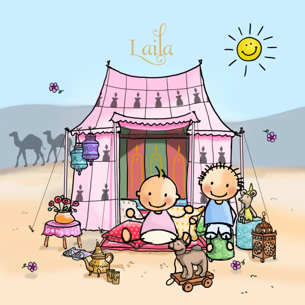 Meisjes arabisch islamitisch geboortekaartje met broer en berber tent