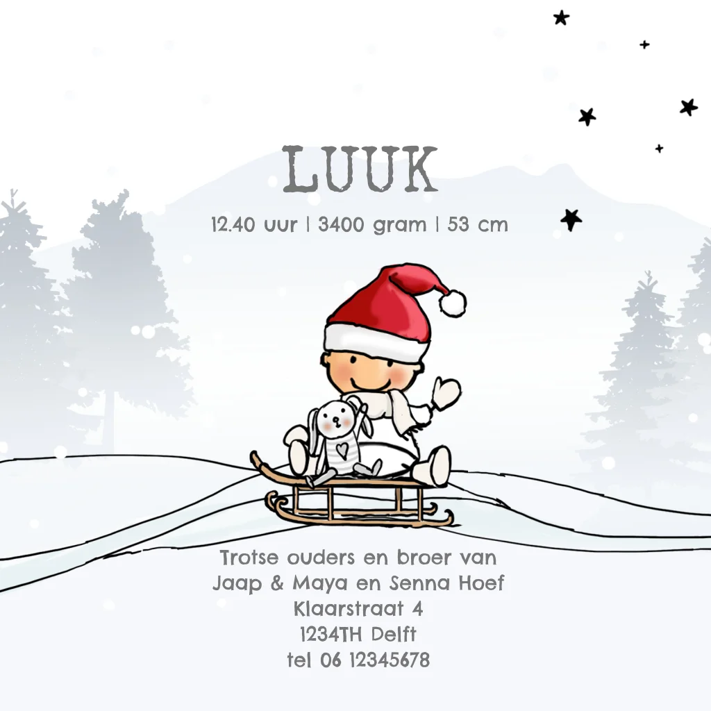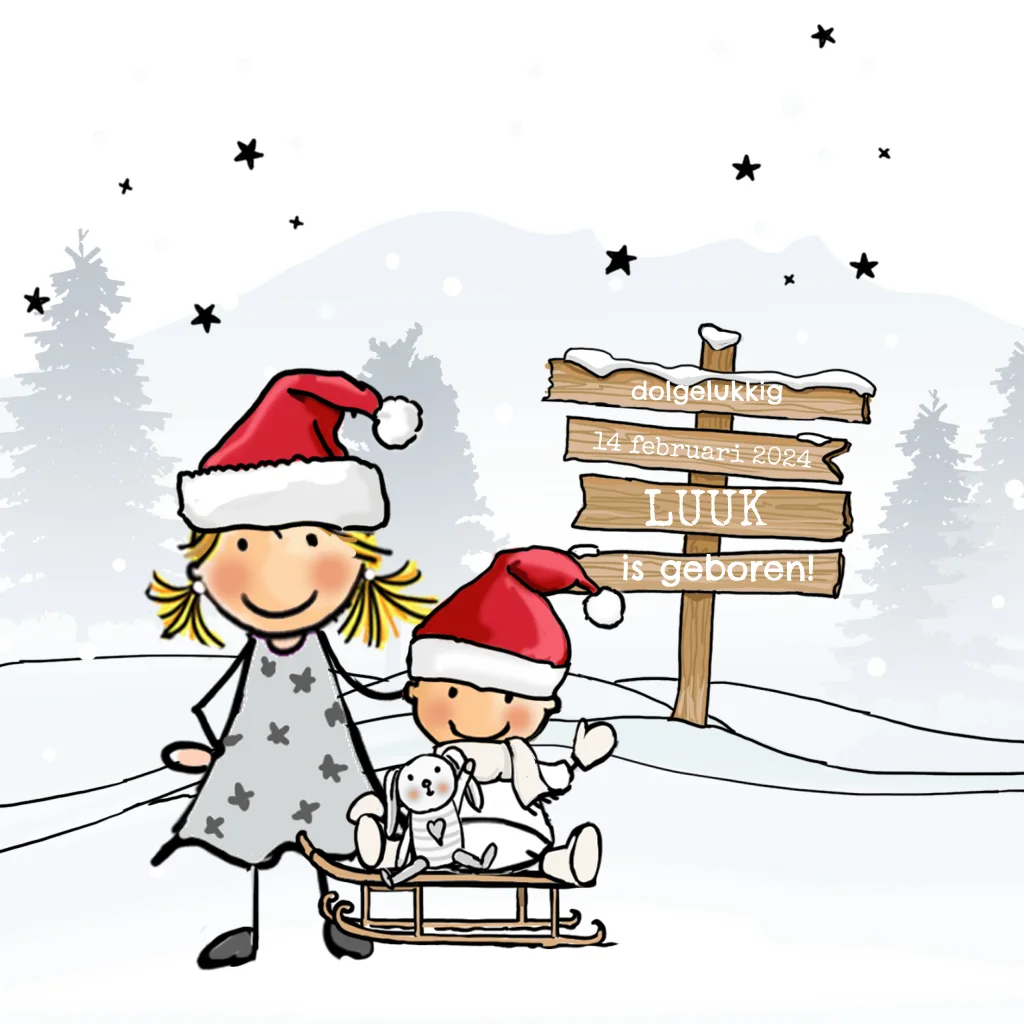 Kerstmis geboortekaartje 2e kindje baby geboren met kerst. (2458)
