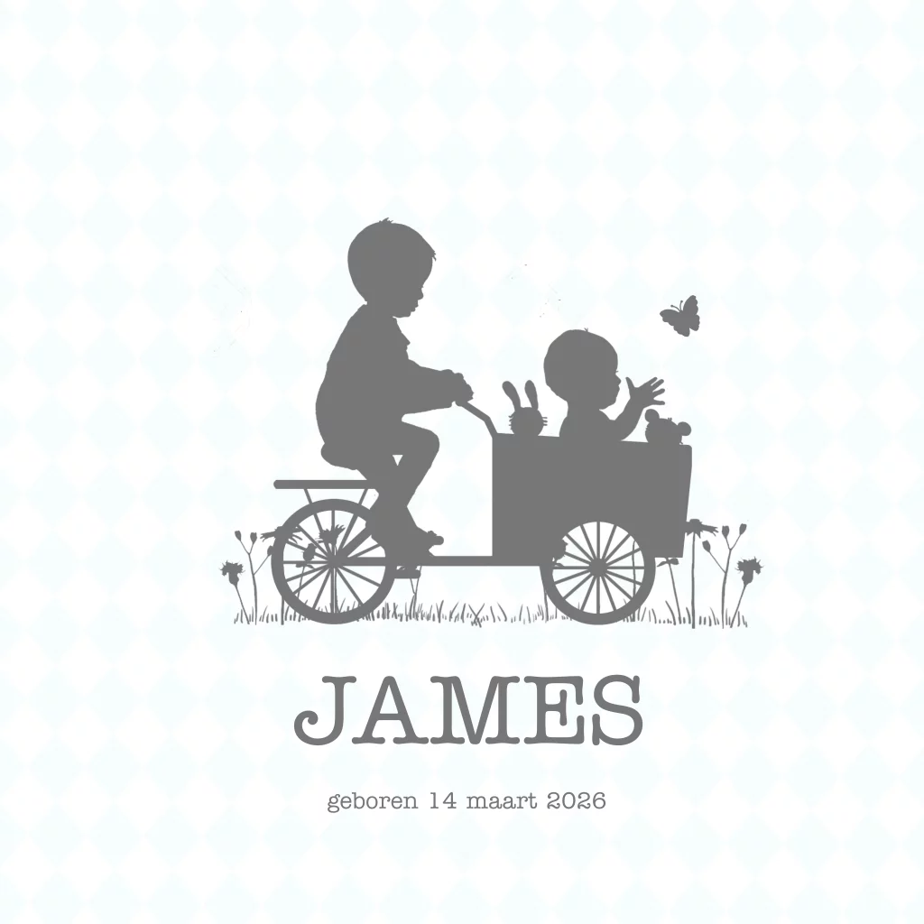 2de kindje geboortekaartje jongen bakfiets met broertje
