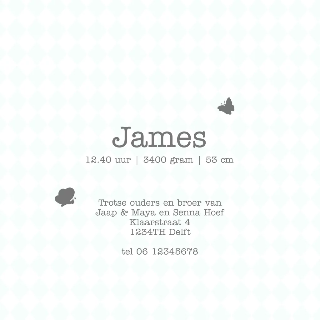 2de kindje geboortekaartje jongen bakfiets met broertje, op de achtergrond een ruitjespatroon in pastelgroen pastelblauw maar dit is naar wens aan te passen. (3617)