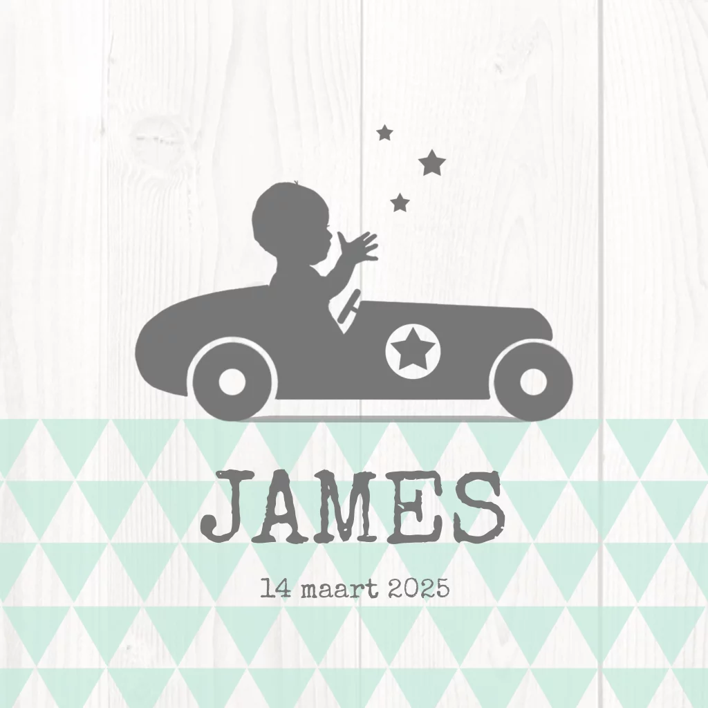 Geboortekaartje jongen profiel raceauto met ster en hout
