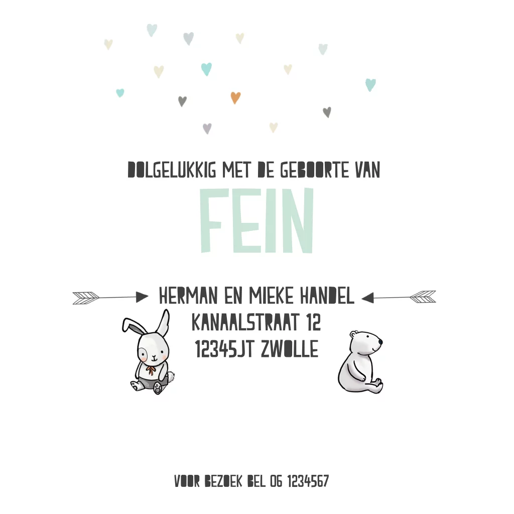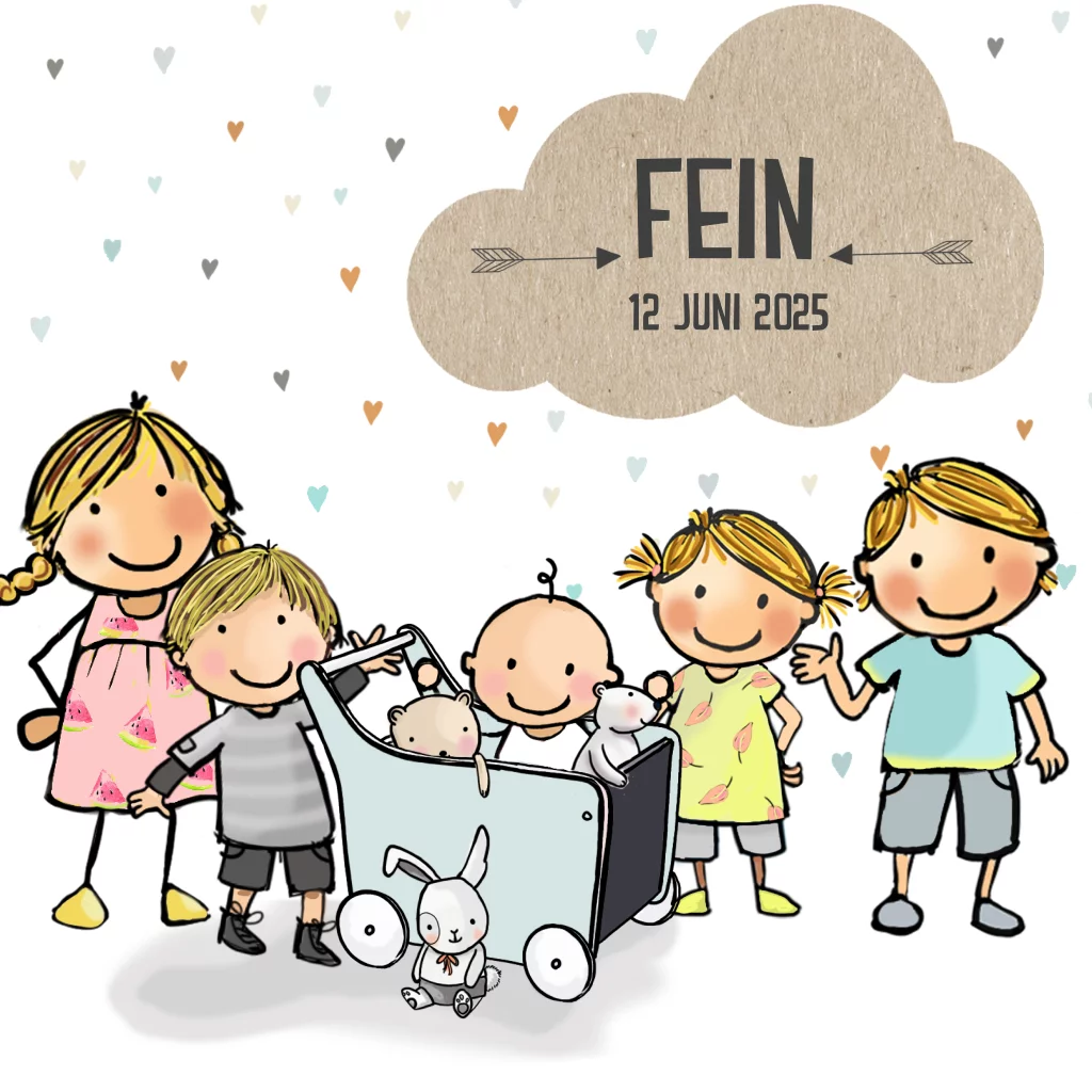 Geboortekaartje 5e kindje broertjes zusjes met knuffels