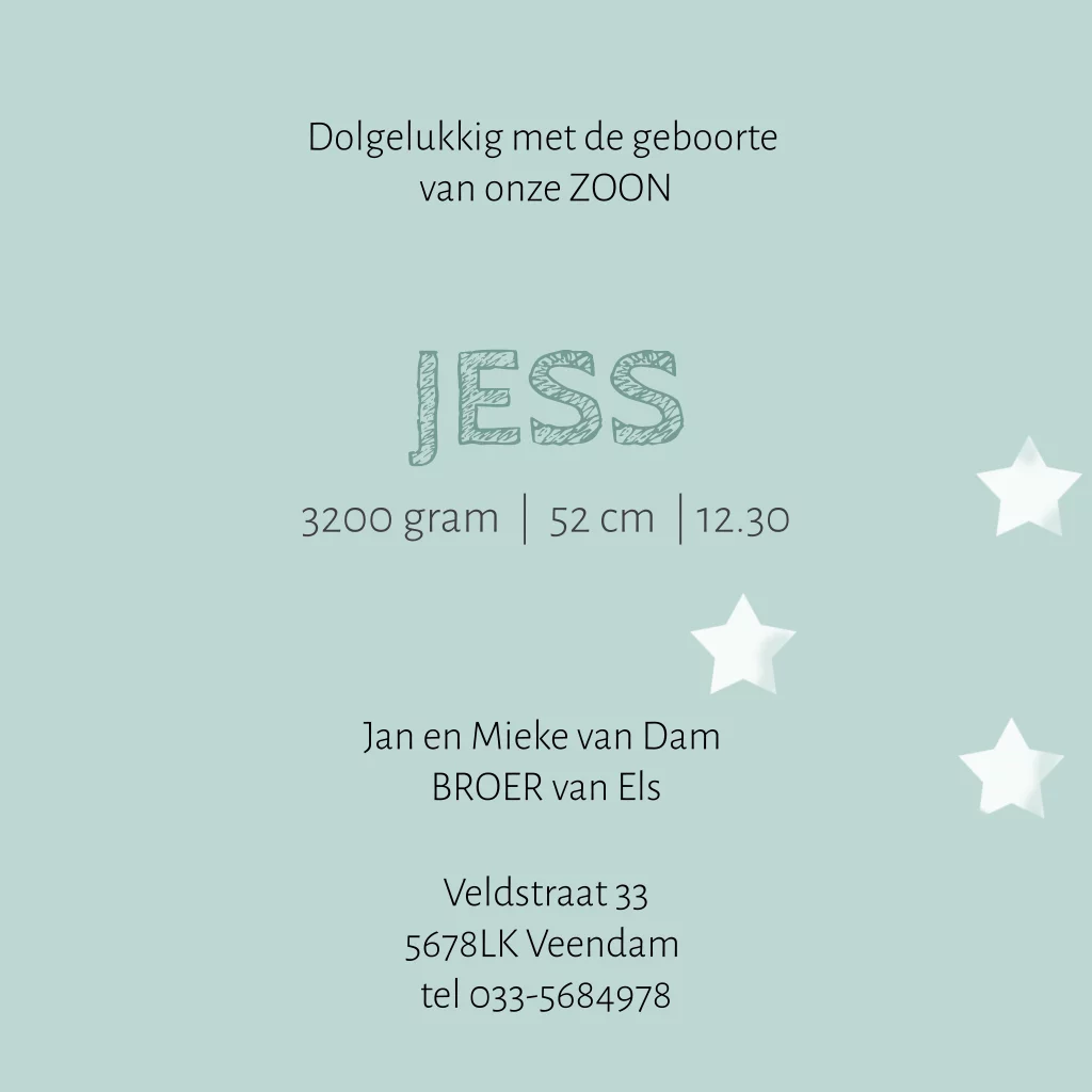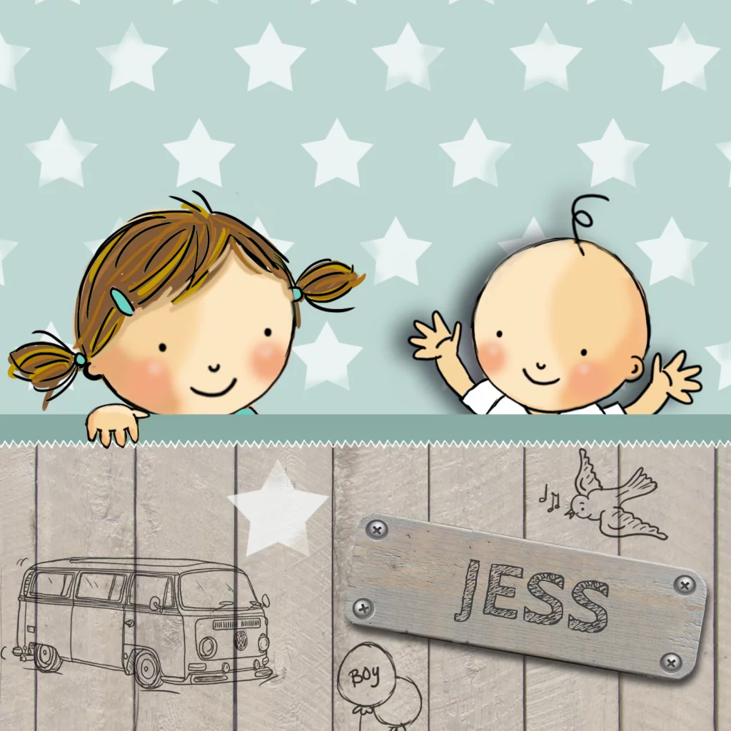2e kind geboortekaartje jongens met tekeningen