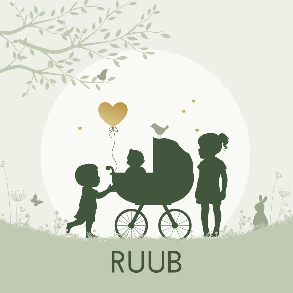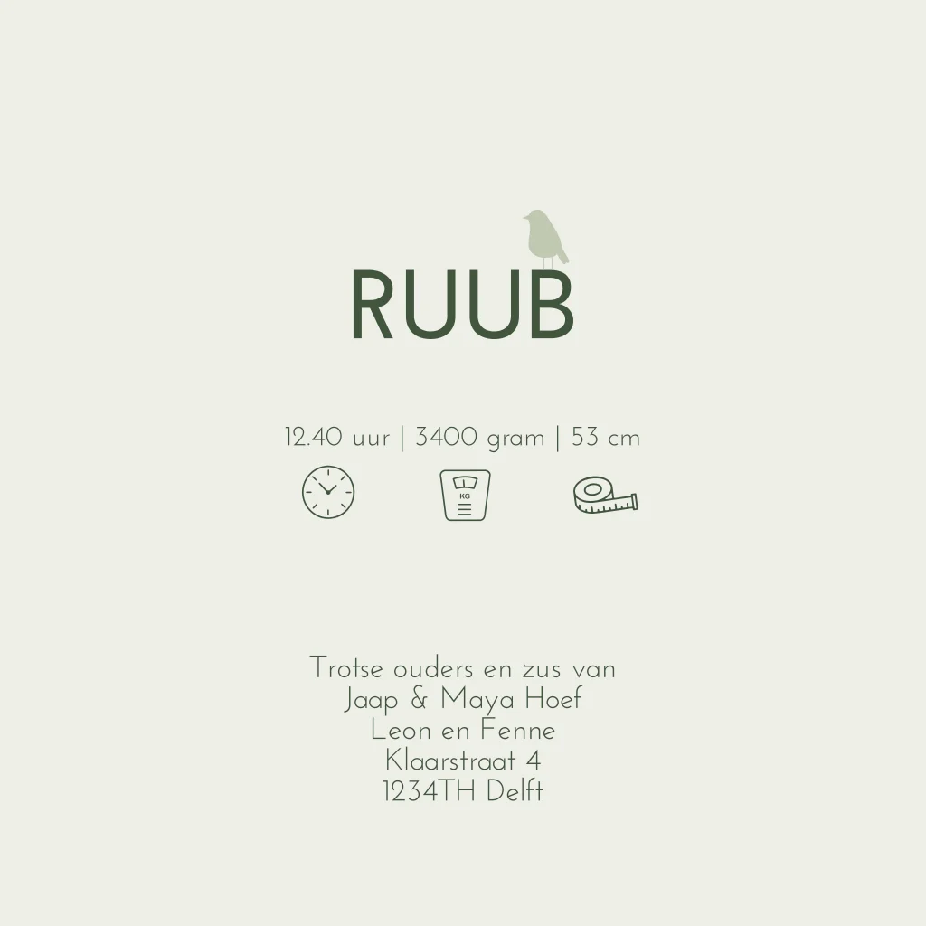 Geboortekaartje 3e kindje jongen in een kinderwagen met een grote zus en broer. De baby ligt in een kinderwagen en de kaart is mooi versierd met dieren en natuur. De kleuren groen zijn naar wens aan te passen (30362). Wil je een andere kleuren of andere samenstelling van broer(s)/zus(sen) op het kaartje? Dat kan. Als het niet lukt dit aan te passen, neem dan contact op.