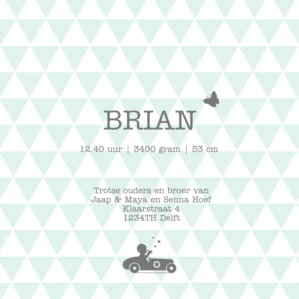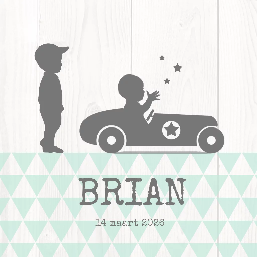 Geboortekaartje jongen tweede kindje profiel raceauto met ster en hout