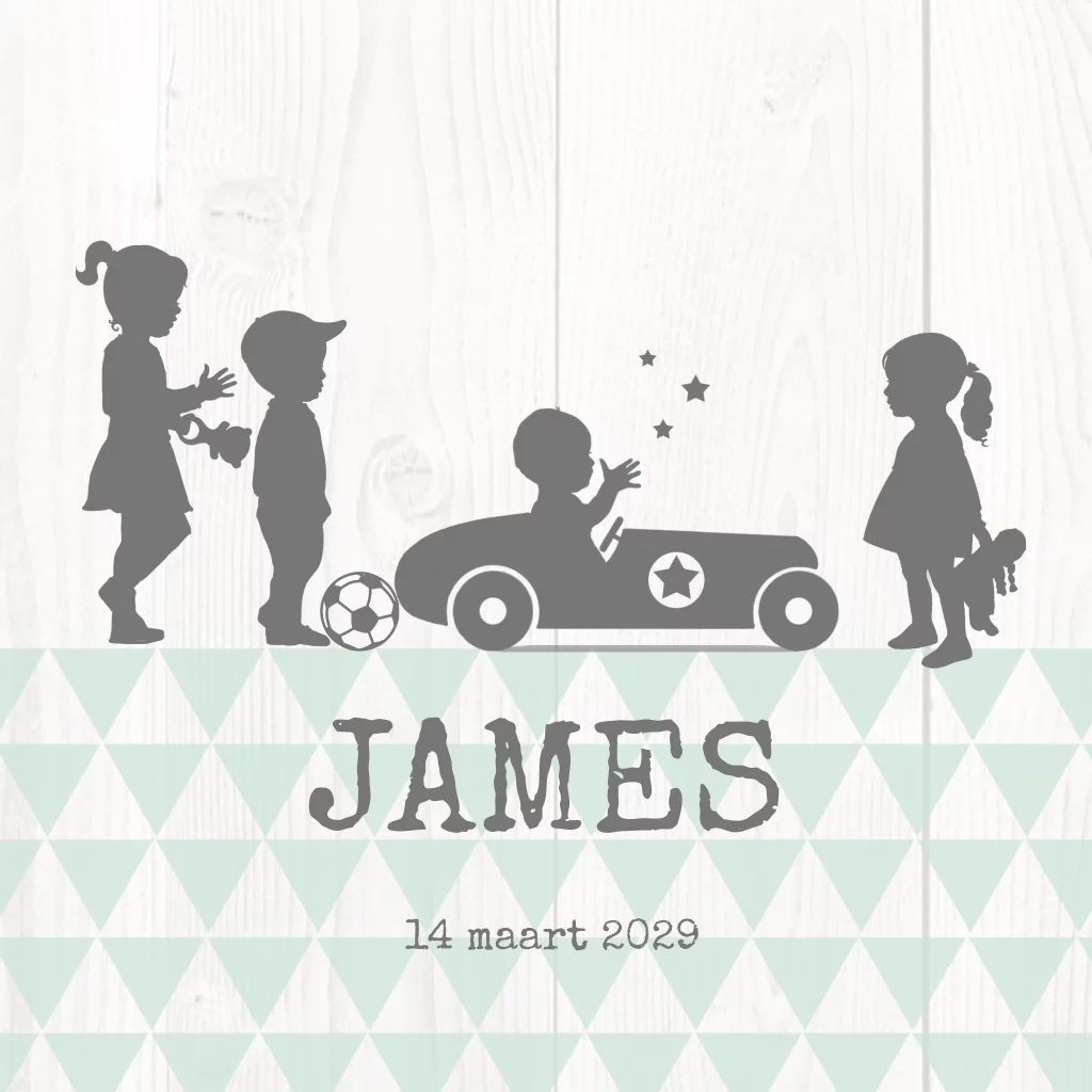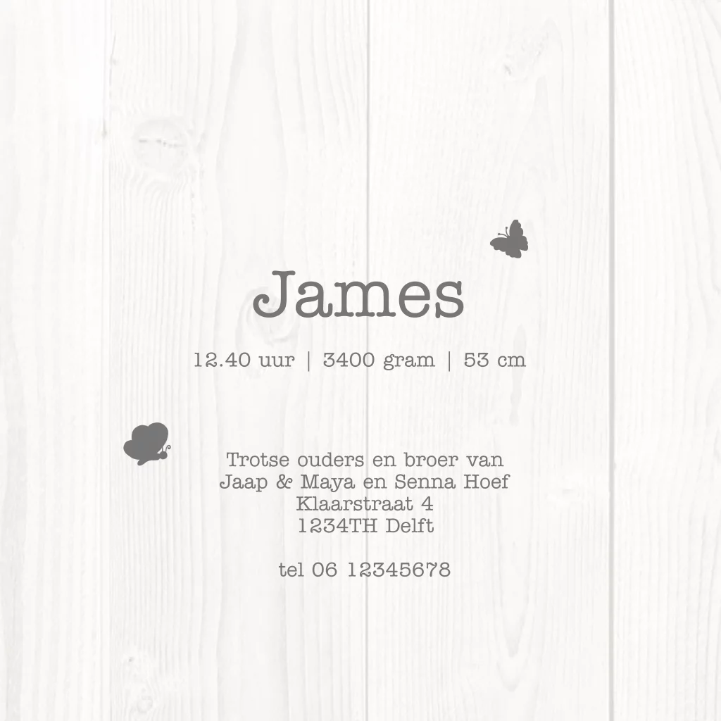 Geboortekaartje jongen vierde kindje pauto met ster en hout
