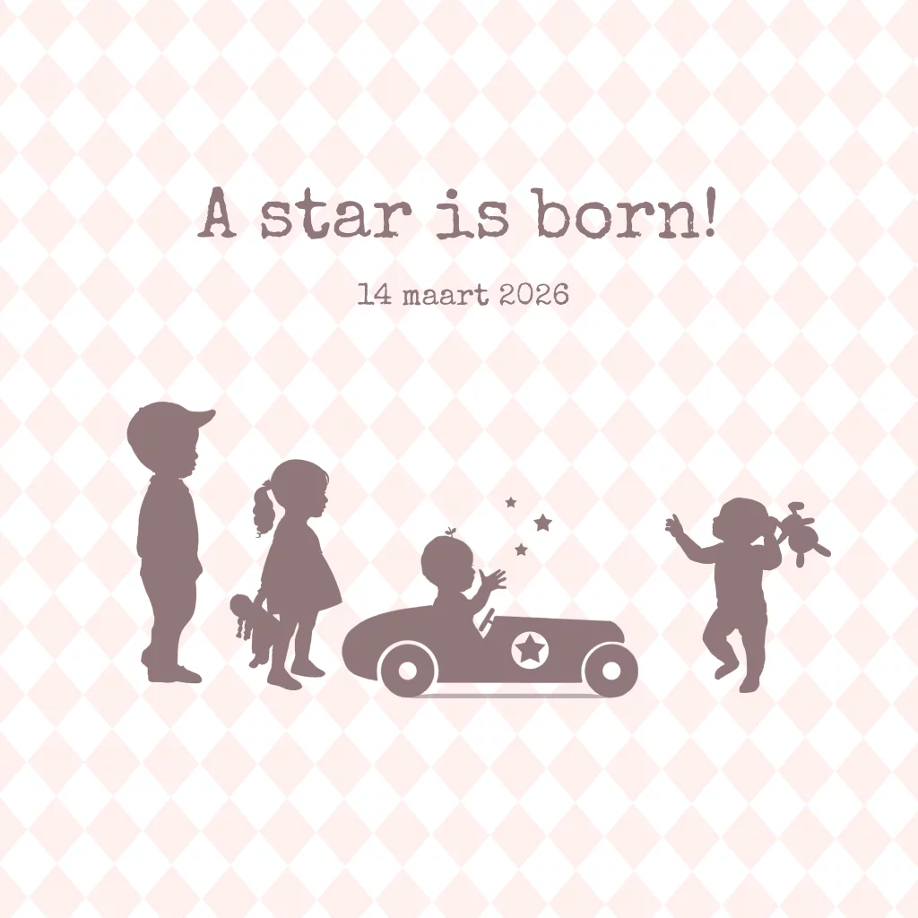 Geboortekaartje meisje vierde kind profiel raceauto met ster